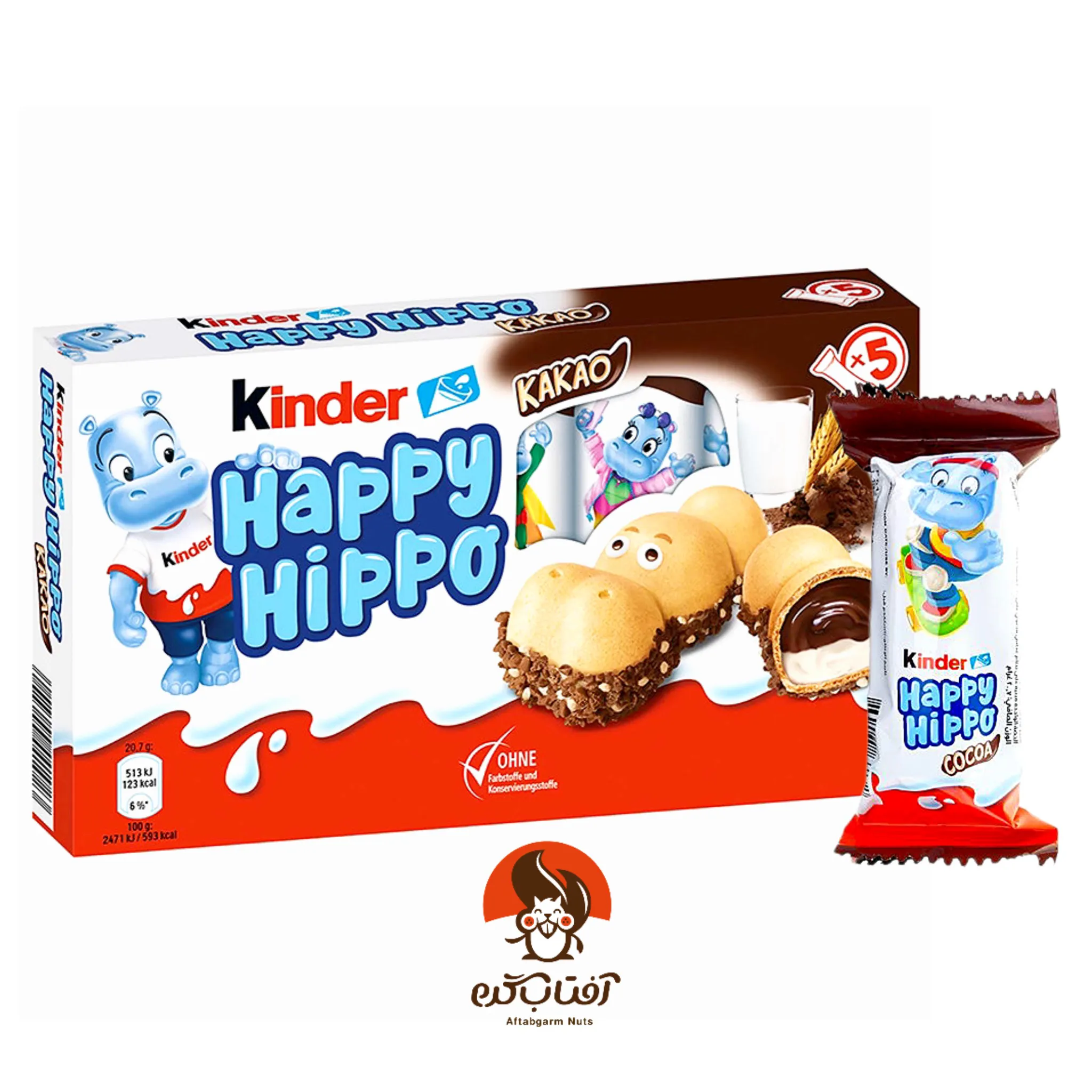 کیندر هپی هیپو شکلاتی در فروشگاه آجیل و خشکبار آفتابگرم با بستهبندی بهداشتی و دربدار عرضه میگردد که نگهداری و استفاده از آن را بسیار راحت مینماید. با خرید آنلاین از آفتابگرم این تنقلات کودکپسند و لوکس با قیمت مناسب، ارسال سریع و اطمینان از تازگی و کیفیت، درب منزل دریافت میگردد و برای مصرف خانوادگی، تولد و هدیه به کار میرود.
